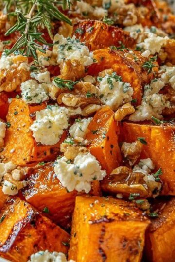 Patates douces rôties au sirop d’érable, feta et noix
