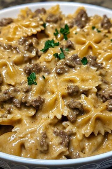 Pâtes papillon à la viande hachée et sauce crémeuse