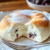 Une fois cuit, sortez le Far Breton du four et laissez-le tiédir ou refroidir complètement avant de le servir. Il peut se déguster nature, tel quel, ou avec une touche de crème fraîche épaisse pour encore plus de gourmandise. Certains aiment l’accompagner d’une boule de glace vanille ou d’un coulis de fruits rouges. Le Far Breton aux pruneaux est délicieux à température ambiante ou légèrement frais.